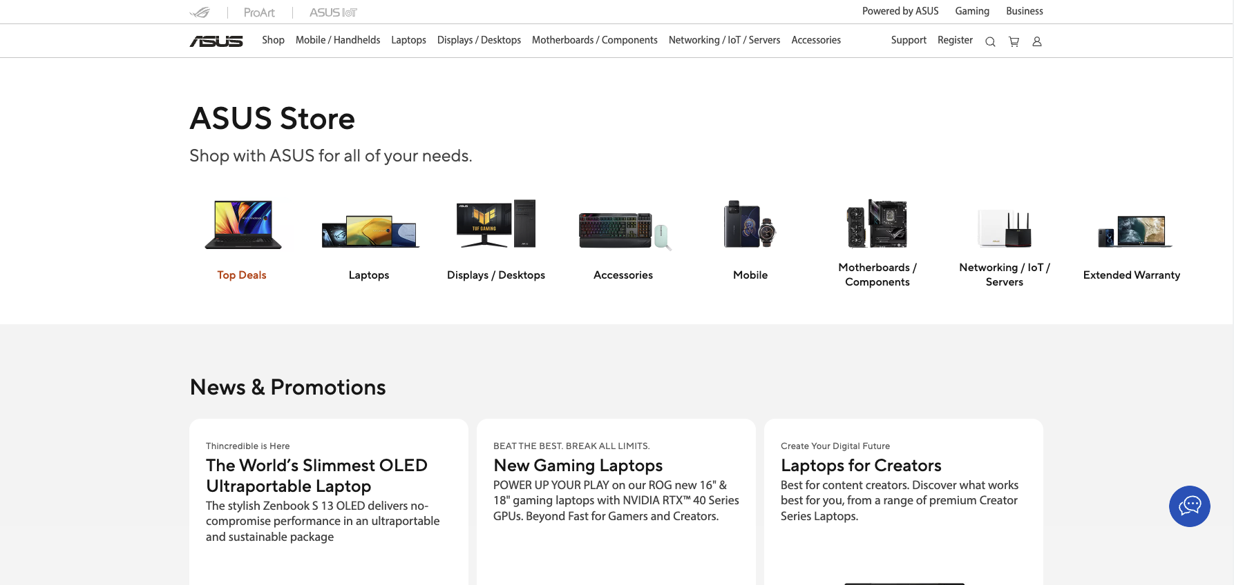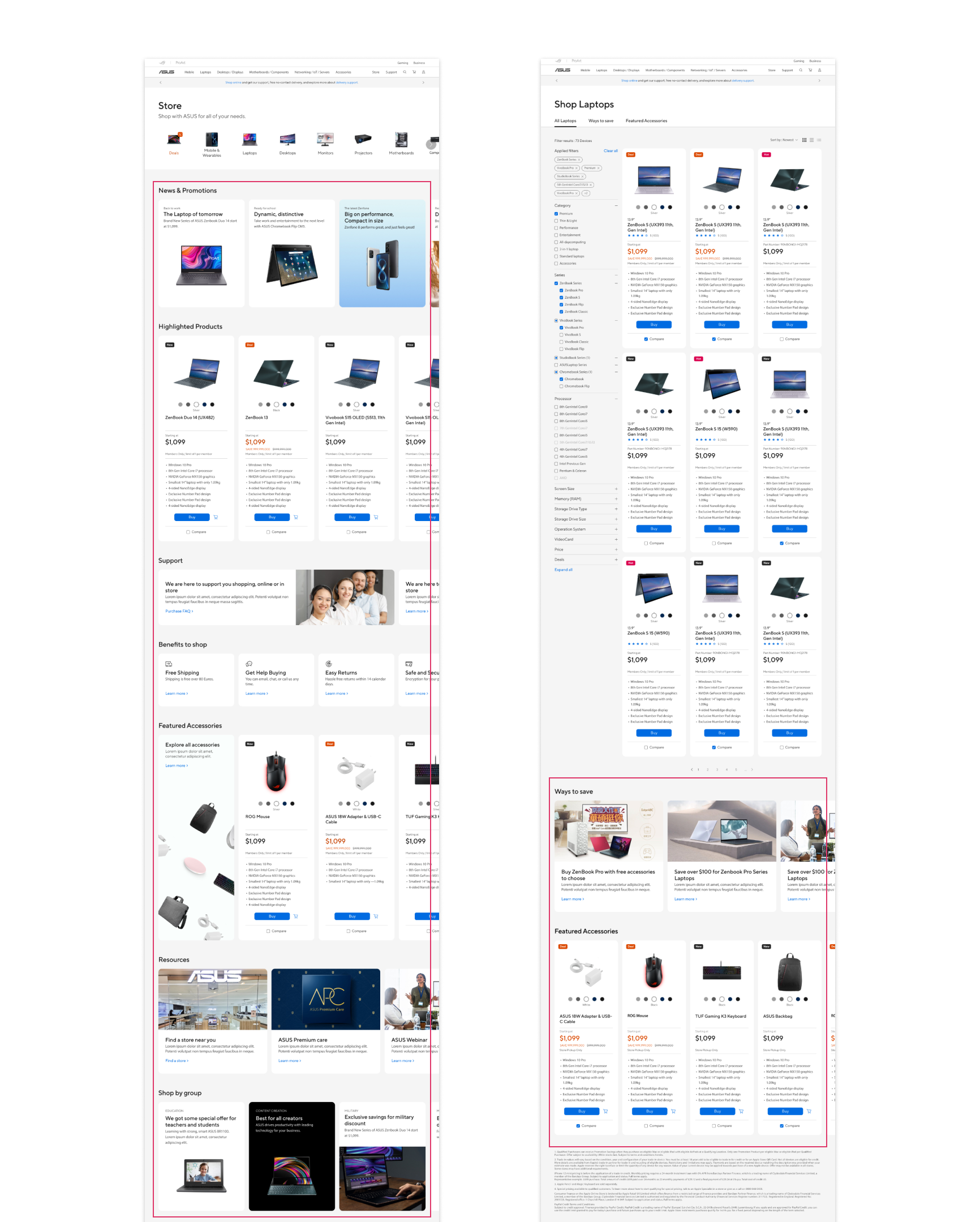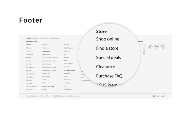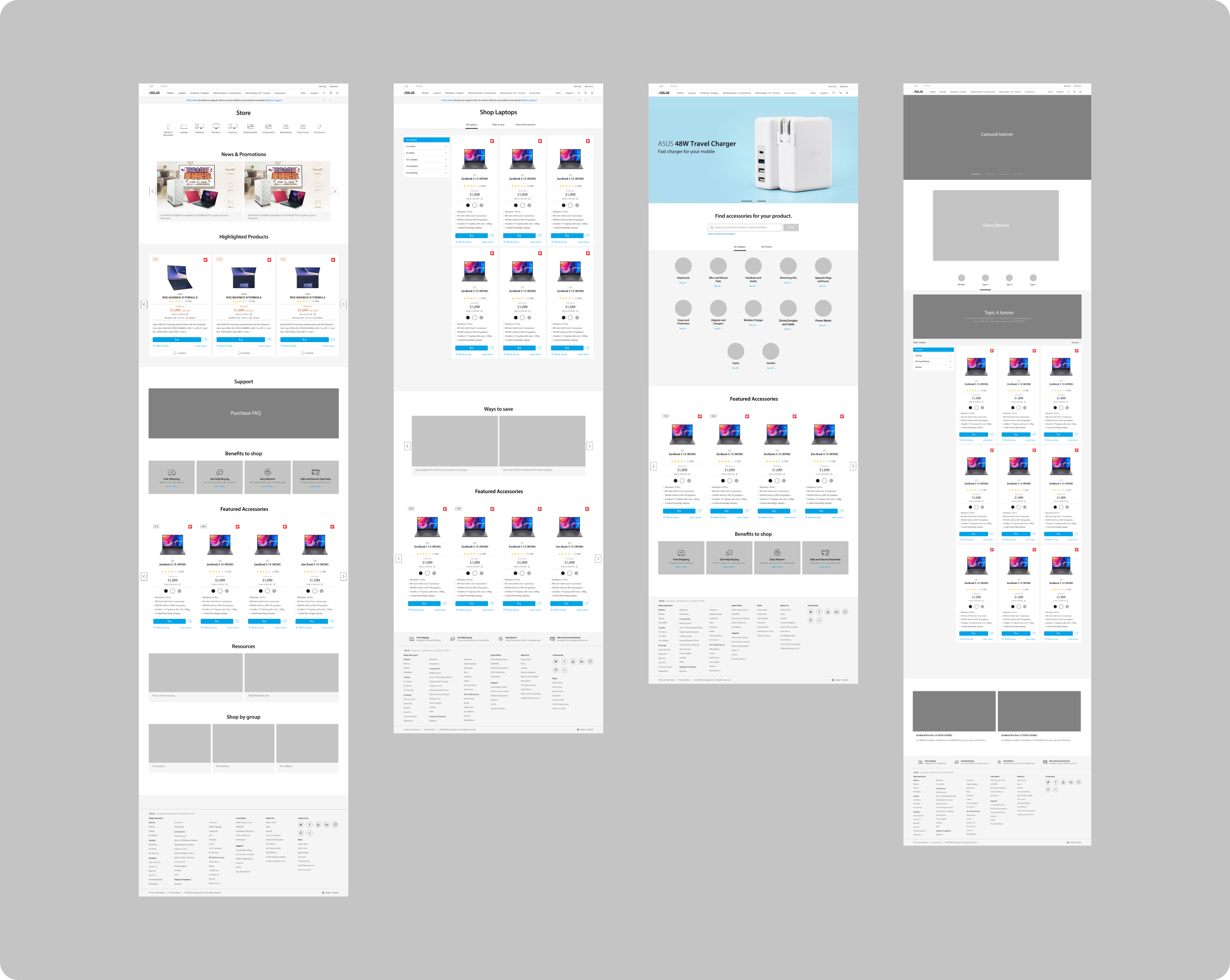 After a few months I left the company, Store feature is now online on ASUS official website! The entrance button is renamed to 'Shop' but the overall content is similar as what has been designed. The page includes four main sections, which are respectively Product Categories, News and Promotions, Highlighted Products, Benefits to Shop, and Featured Accessories.