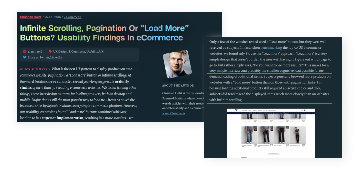 In case that if too many product cards are listing on page without the control to stop loading them, it'll undoubtedly affect the scrolling experience, especially for India users who use mobile more often than PC. Therefore, I need to evaluate which design method is the best for us. There're three ways for scrolling: