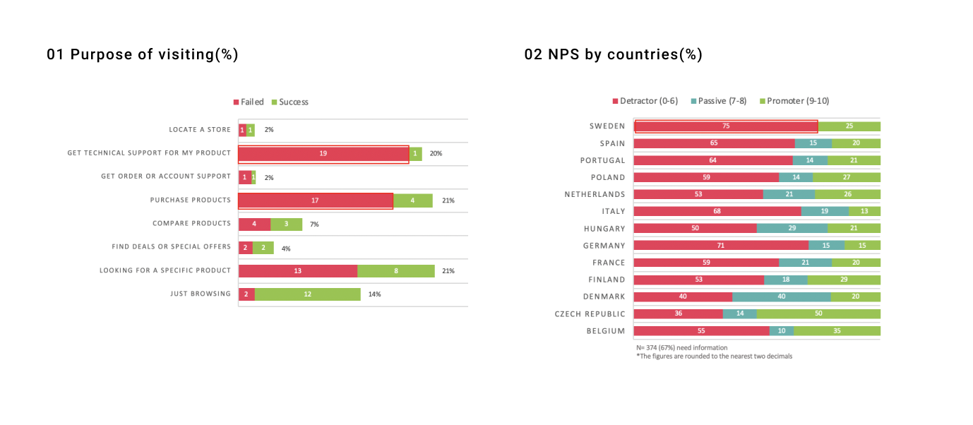 1. Satisfaction score is only 2.71 out of 5 in average. NPS score is only -38 out of 100 in average, Sweden has the lowest score.