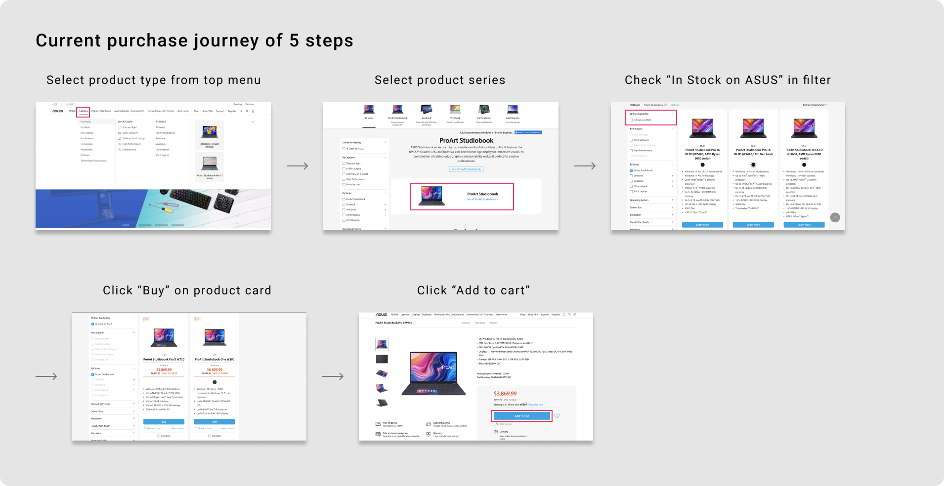 ASUS has launched a new site in 2021 to develop an e-commerce service rather than selling products only from physical stores. Yet the purchase journey isn't easy to complete which affects the online order experience. The "Store" function could make it simple enough for users to reach all e-commerce services and products in fewer steps. The final proposal has successfully satisfied stakeholders' expectation and is now online in ASUS website.