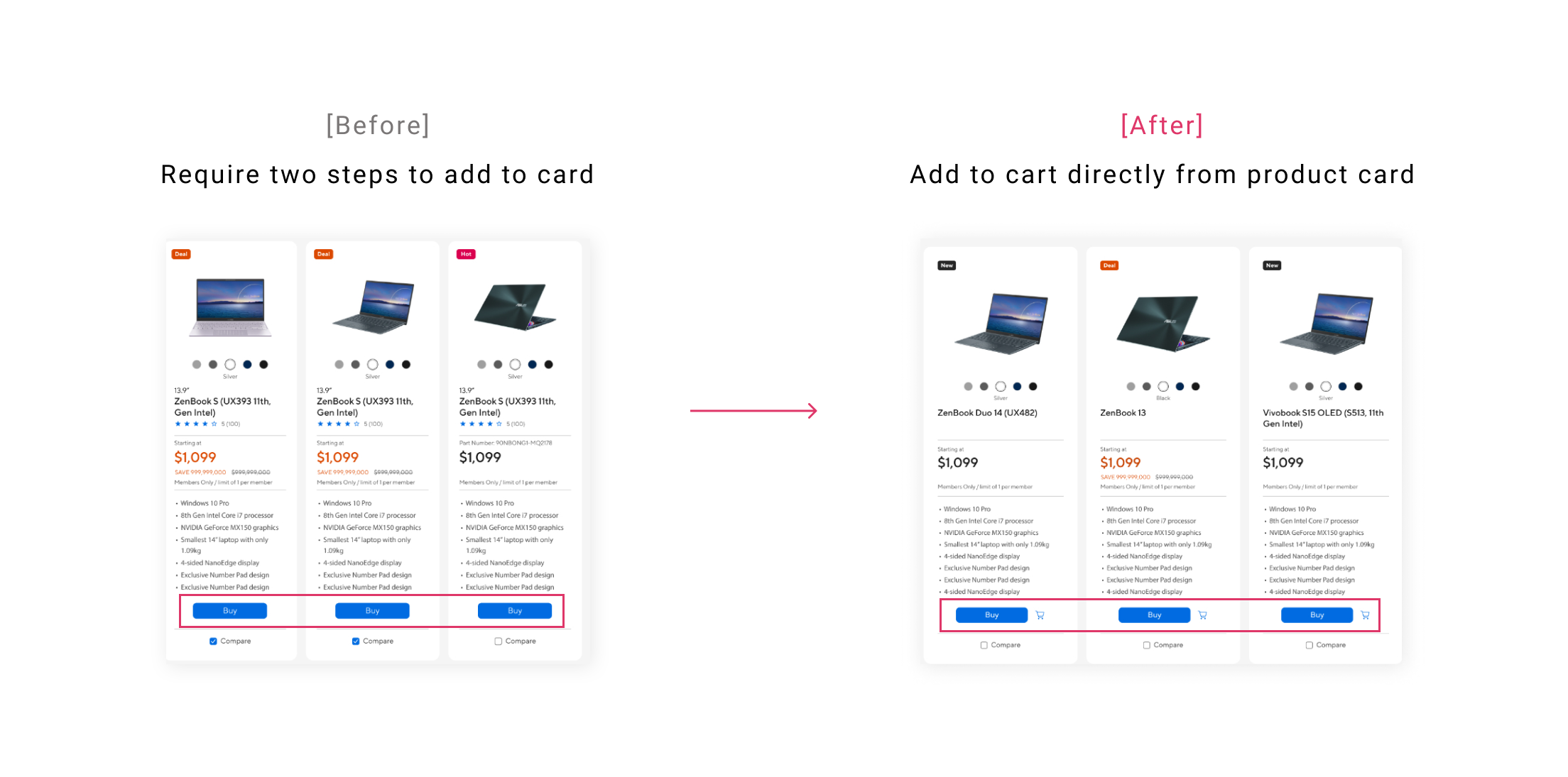 - Most competitors provide add-to-cart buttons directly, eg. HP, Lenovo, Dell, Acer.